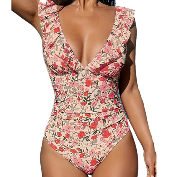V-Neck Ruffled Tie-Back Multi-Color One-Piece Swimsuit